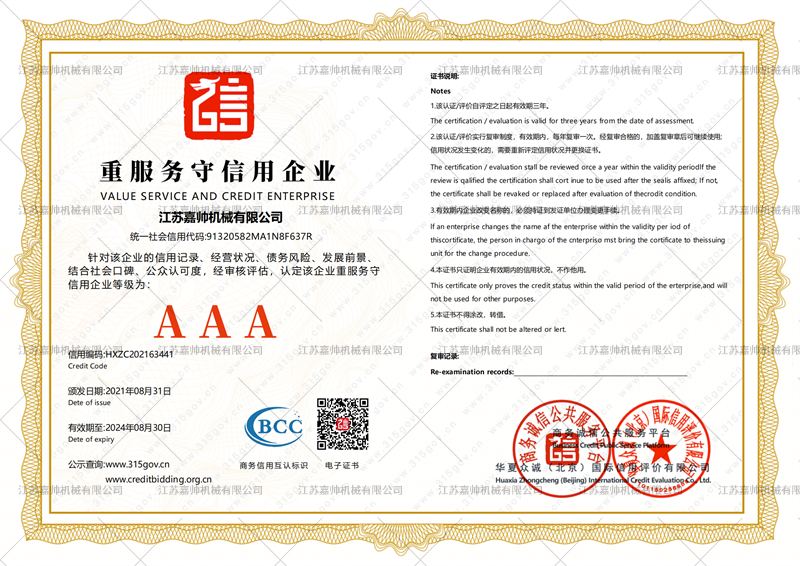 • 企業(yè)信用3A證書(shū)